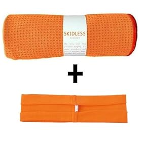 Orange yogitoes mat size SKIDLESS yoga towel + orange hBand stretchy