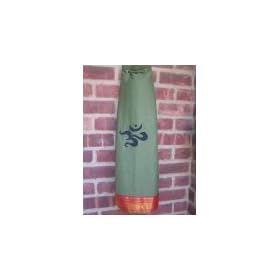 OM101014-Olive Color: Olive Pictured in Chocolate Features: -Yoga Mat Bag. -Available in several colors. -Made of heavy duty cotton twill fabric. -''OM'' embroidered on the center and gorgeous red and golden Saree lace at the lower end of the bag. -Inner liner fabric with an inner zippered pocket to hold your keys, cell phone and credit cards. -Spacious enough to hold mats, towels, a change of clothes, eye pillows, straps and bottled water. -Pull Chord closure and strong enough to hold and carry any big yoga mats. -Hand wash in cold water and air dry. -Overall dimensions: 27.5'' H x 8.5'' W x 11'' D.