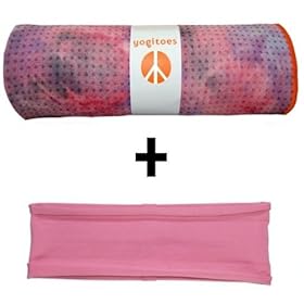 Springburst yogitoes mat size SKIDLESS yoga towel + pink hBand stret